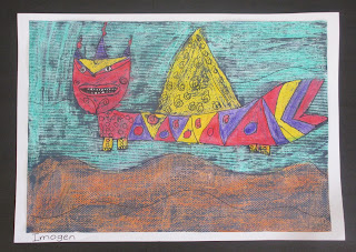 During Maori Language week we read a lot of different taniwha stories. We looked at the illustrations and drew lots of taniwha with Maori patterns on them. Next we drew our big taniwha with vivid. We coloured the taniwha with crayons and added texture by rubbing patterns onto the background. The last thing we did was dye our taniwha art works black. Please come to R2 to look at our taniwha art.